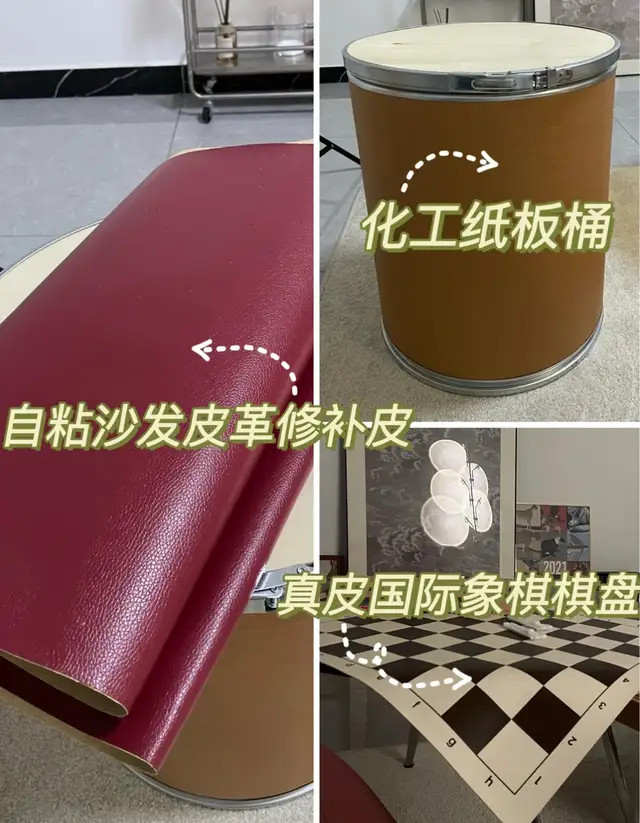 先用自粘的红色皮给纸桶贴皮,再把真皮象棋棋盘按照桶顶部面板的大小裁剪好、固定住就完成啦,又稳又好看质量还棒!
