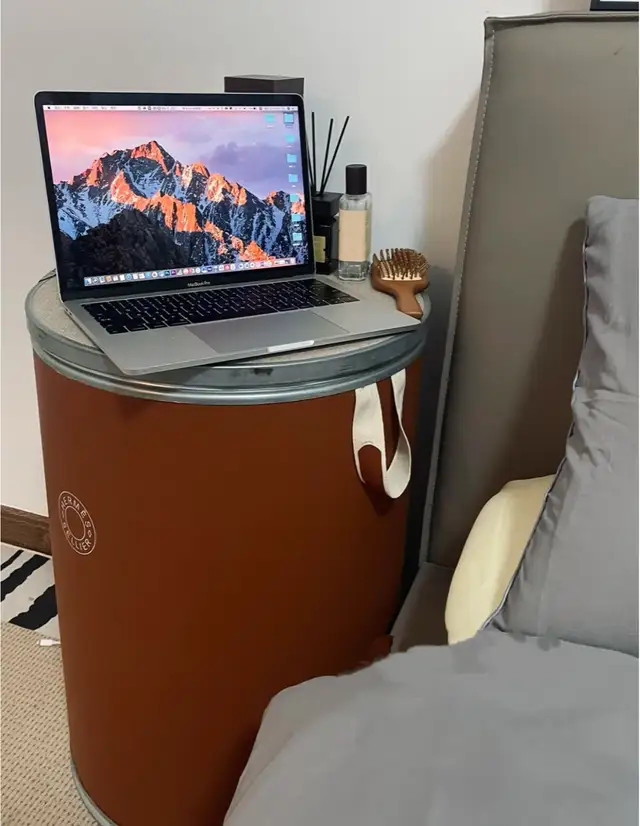 化工纸筒非常结实,坐上去、踩上去都没问题,稍微装饰一下就能当床头柜,平时在上面用电脑办公或放东西都没问题。