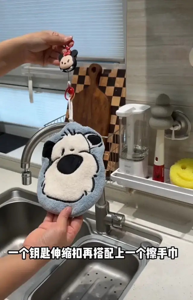 发动我聪明的脑袋瓜,把不用的钥匙伸缩扣和擦手布组成CP,相当于加了“自动归位”。