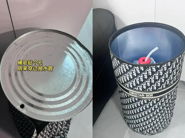 先把桶底钻孔,倒扣过来用来穿抽水管,侧面用好看的贴纸装饰一下,盖上盖子,小茶吧机大功告成!