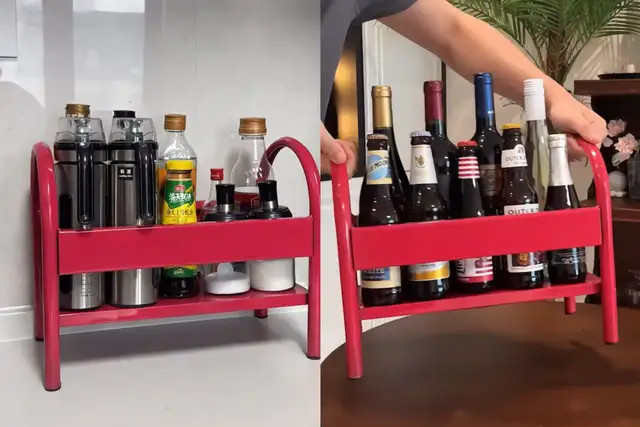 当然,它的作用不止于此,当厨房台面置物架可以把瓶瓶罐罐调料收纳好,取用一目了然;